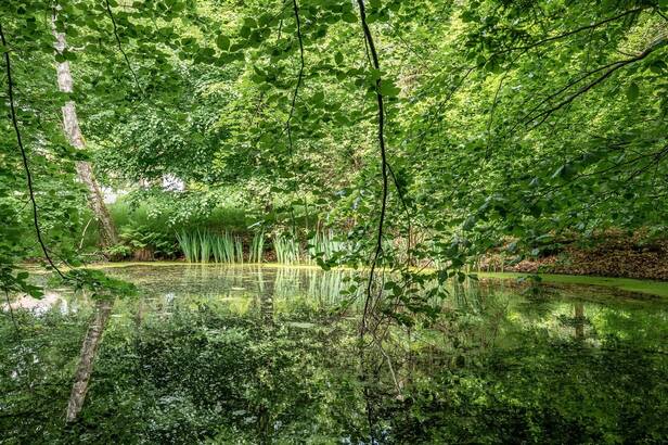 Ett ytterst rofyllt läge, privat och utan grannar. Här återfinns unika träd och planteringar med handplockad fauna från hela världen. En damm för fiskodlingar. Orangeri för den växtintresserade som lämpar sig väl för druvor. Garage och uppställningsplats. Pool med poolhus och stensättning.