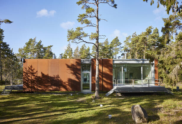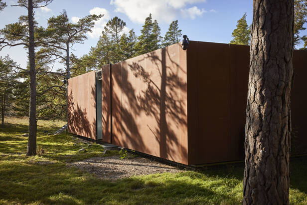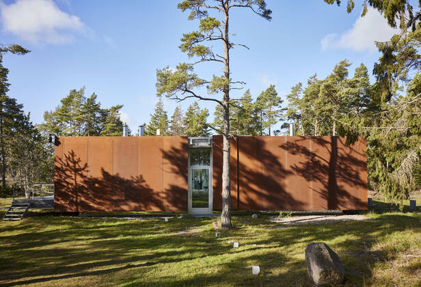 Fastigheten utgör en kubformad byggnad på arton gånger åtta meter, fridfullt belägen i den Gotländska skogsdungen, omringad av mastallar. En fasad klädd av corténstål, som med sin matta, rostanlupna yta smälter väl in i tallskogens brunrödgröna skala.