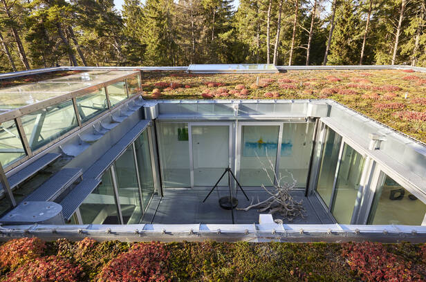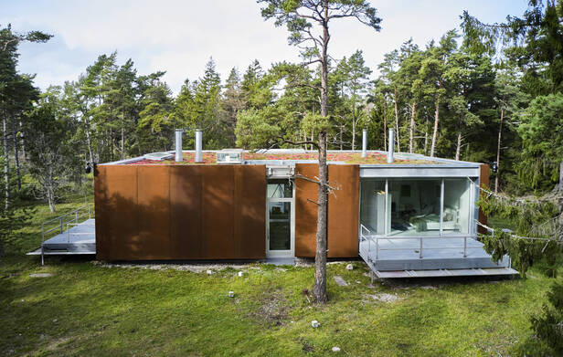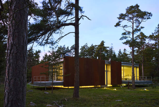 Här har arkitekten sänkt ner den tunga huskroppen så varsamt att den inte ens möter marken när han långsamt dragit isär sina kupade händer och släppt taget; byggnaden fortsätter att sväva ett par decimeter ovanför ytan utan att alls vidröra grus, kottar, backtimjan och blåklockor.