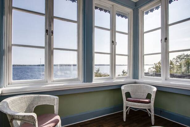 Tomt 8 är en av de vackrare originalfastigheterna på ön. Närheten till strandlinjen, havshorisonten och all den historik som platsen besitter, gör att helheten är fulländad.