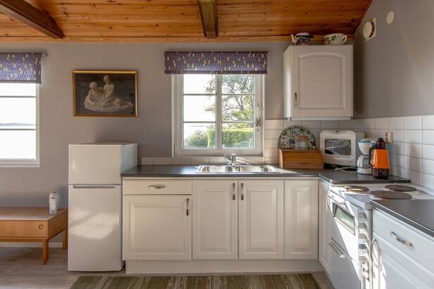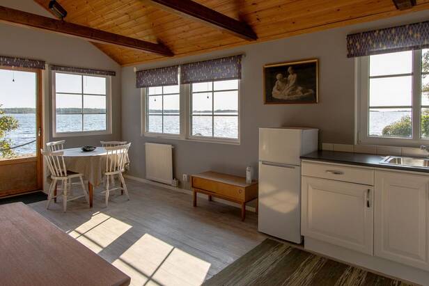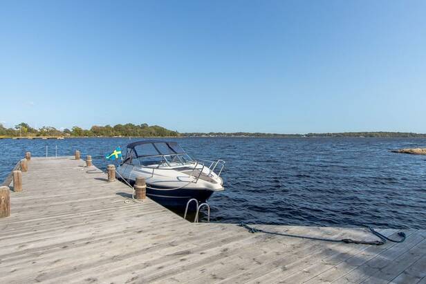 Modernt större vinterbonat gästhus, med eget kök, blickar ut mot vattnet och horisonten. Flertalet härliga uteplatser finns på tomten, för att insupa dygnets alla soltider. Bryggan innehar ett djup om ca 2 m vid badstegen och utgör 16 m, m.a.o. finns det gott om plats för gästbåtar.